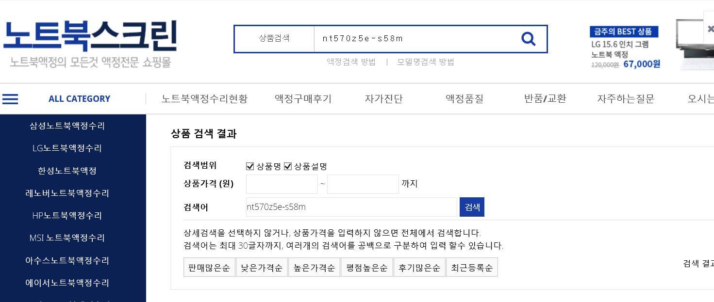 일단 노트북스크린 쇼핑몰에 들어가서 확인!!
