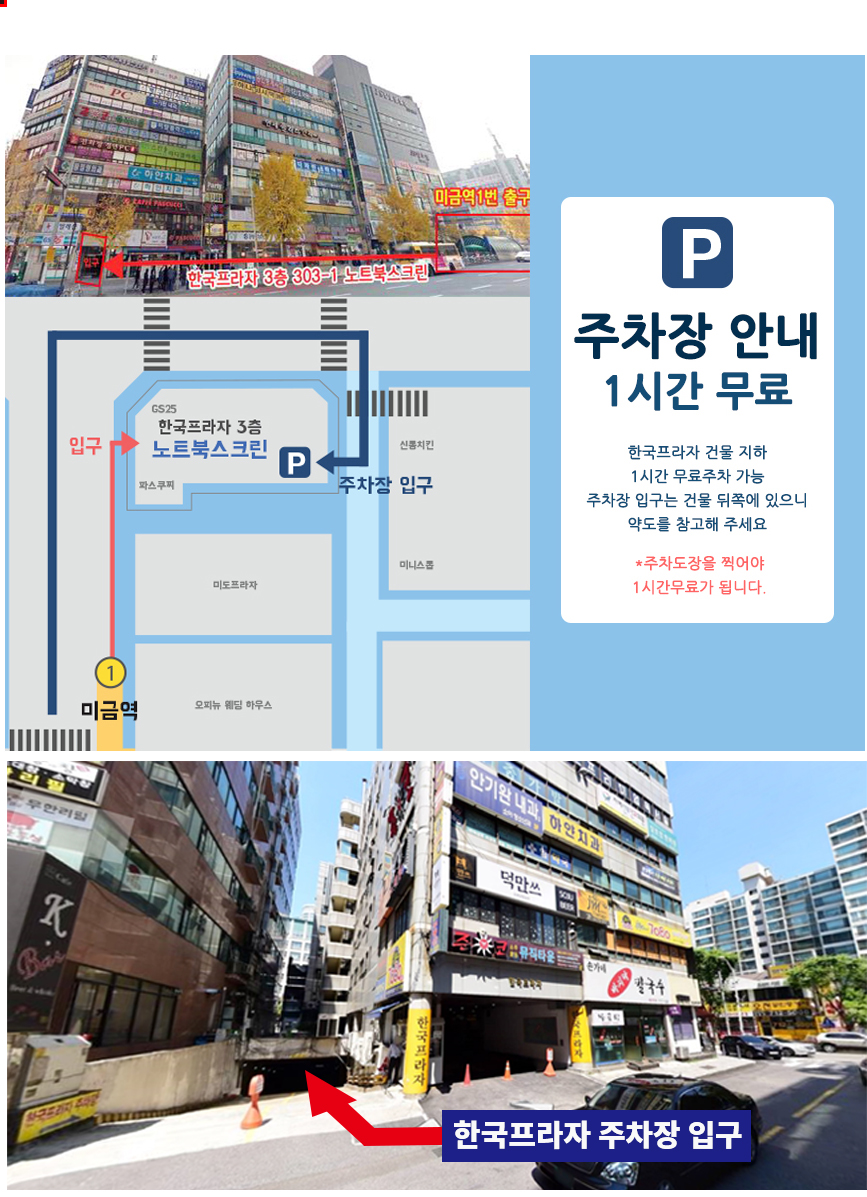 노트북 스크린은 교통이 편리한 미금역에 위치하고 있어요