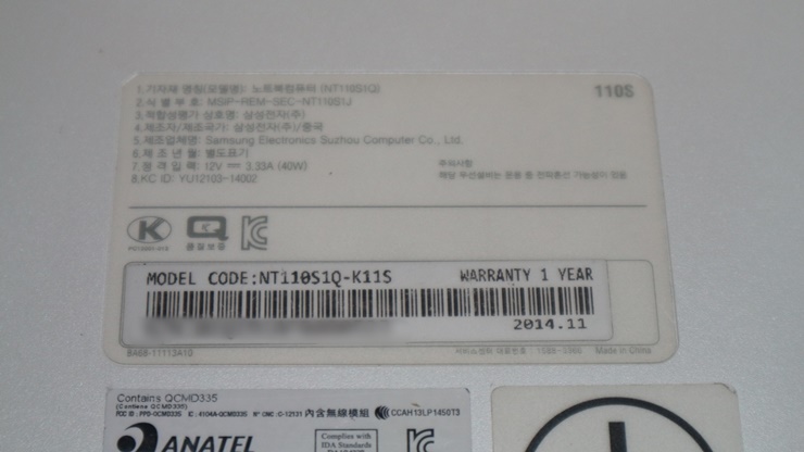 모델명은 노트북 후단에 라벨로 붙어있습니다