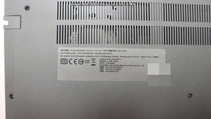 요 노트북은 레노버 V15 G2 ALC 노트북인데요 보시면 하얀색에서 오른쪽 밑부분에 색깔이 어두워요.