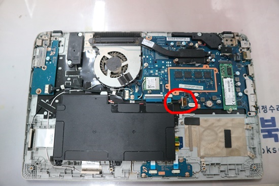 배터리선은 뽑지 않은 상태로 액정 교체를 하면 메인보드, 케이블 불량 등 다른 문제가 생길 수 있어요.