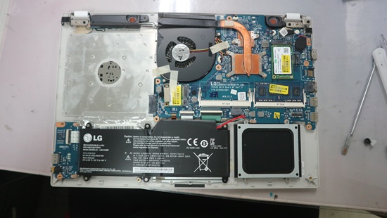 오늘 방문해주신 고객님은 LG 노트북을 들고 오셨는데요, 노트북 뒷면에 보이는 15U530-GT3WK가 모델명입니다!
