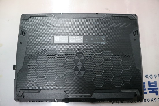오늘 방문해주신 고객님은 아수스 노트북을 들고 오셨는데요, 노트북 뒷면에 보이는 FX506LH-HN004가 모델명입니다!