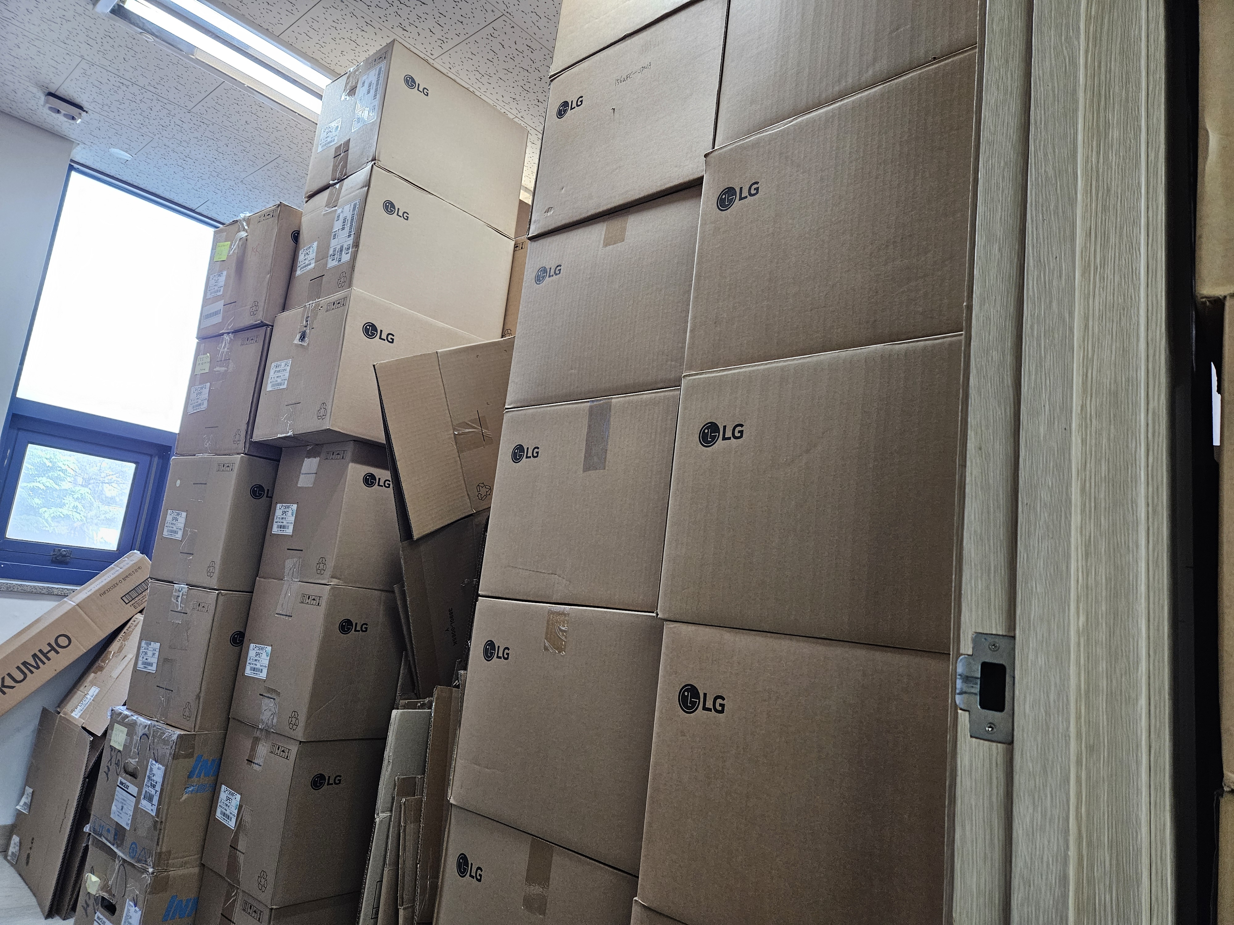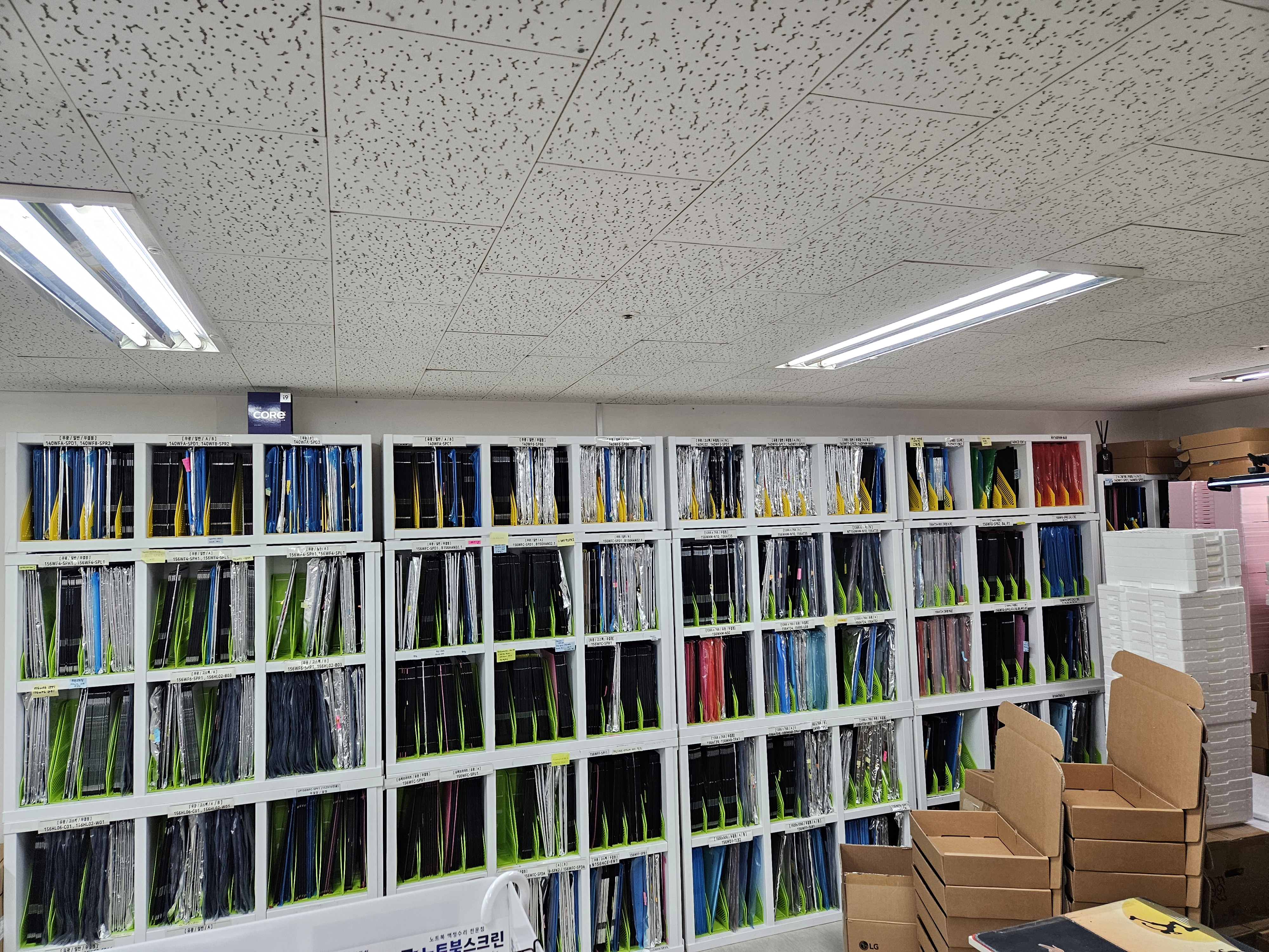 꽂을 공간이 부족해 박스 채로 쌓여 있는 액정들도 있죠! + 사장님. 미남이세요.