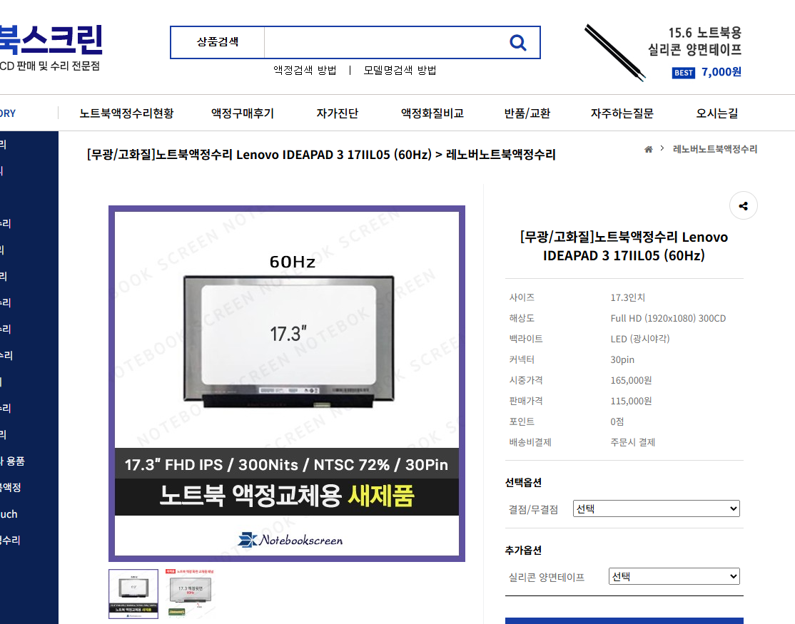 노트북스크린 홈페이지에서 확인을 하면 요렇게 떠요.