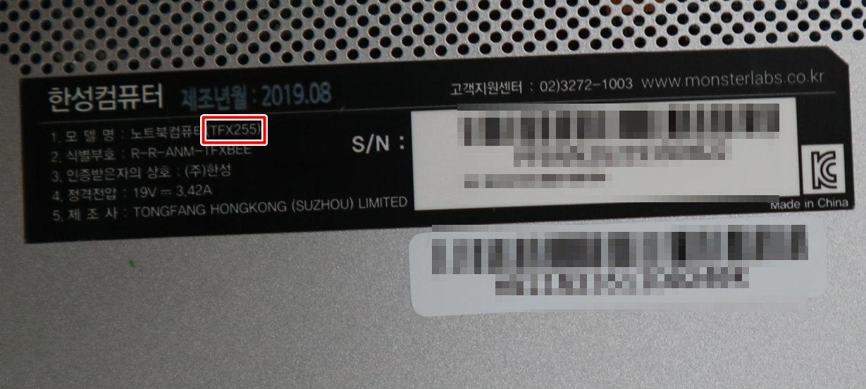 이렇게 고객님의 한성노트북 TFX255 수리를 마무리했어요.