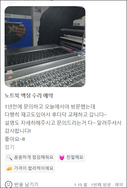 노트북을 맡길 때는 작업을 실제로 보여주는 업체인지 확인하는 것도 중요합니다.